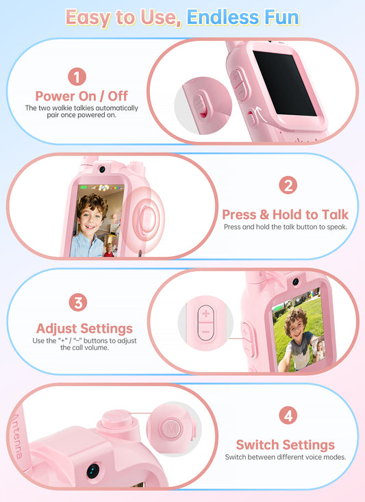 Video Walkie Talkies for Kids,2 Pack Rechargeable Long Range Facetime Walkie Talkies for Boys Girls Ages 3-12,Toddler Toys for Family Games,Kid Gifts for Indoor Outdoor Camping Hiking Adventure